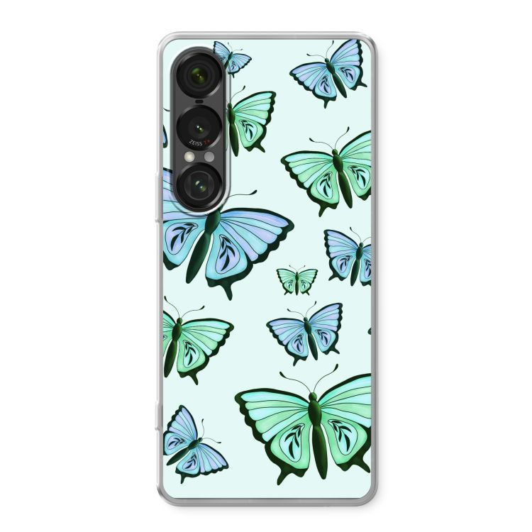 Sony Xperia 1 VII Handyhülle - Blaue und grüne Schmetterlinge